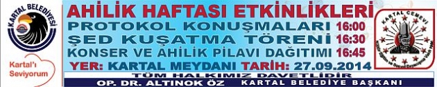 Ahilik Haftası etkinlikleri kapsamında açılış konuşmaları, şed kuşatma töreni yapılacak. Sanatçı Hakkı Şimşek, Onur Alçınkaya, Ceren Yeter, Filiz Kılıç’ın da konser vereceği programda, Ahilik pilav dağıtımı da yapılacak.