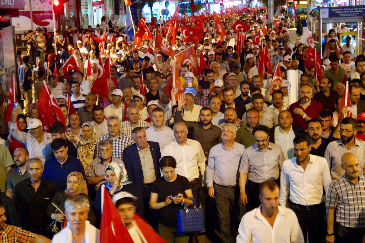 Güngören Aliya İzzet Begoviç parkında toplanan mahşeri kalabalık, Diriliş mehteran grubunun mehter dinletisinin ardından büyük bir kortej eşliğinde yürüyüşe başladılar. Güngören Kaymakamı Zafer Orhan, Güngören Belediye Başkanı Şakir Yücel Karaman, Güngören Ak Parti ilçe başkanı Ercüment Sever, Milliyetçi Hareket partisi ilçe başkanı Fuat Gül ve İlçe emniyet müdürü Sinan Çamuroğlu'nun önderliğinde başlayan yürüyüş, çeşitli marşlar ve teröre lanet sloganlarıyla başlayan yürüyüş, Güngören Emniyetinin aldığı geniş güvenlik önlemleri eşliğinde, 15 Temmuz Şehitler parkına doğru harekete geçti.