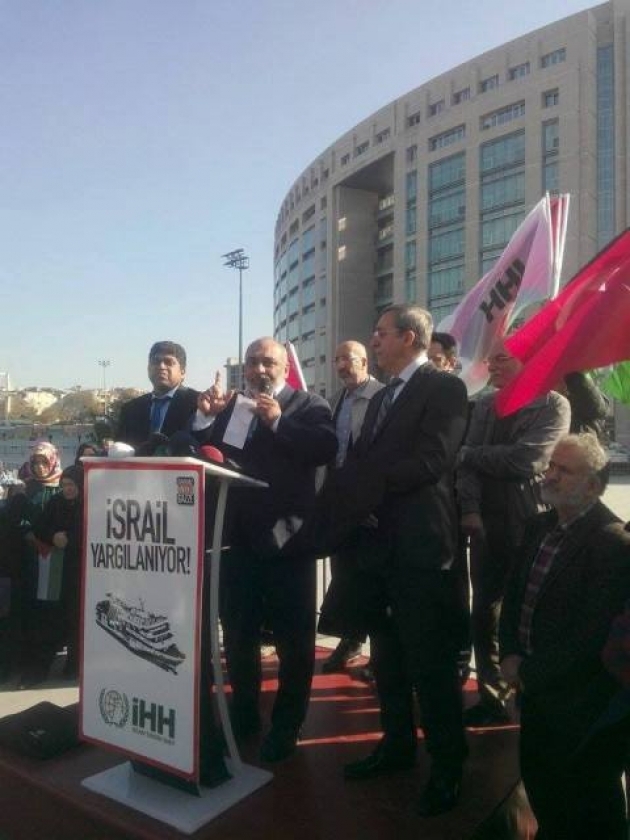 Mavi Marmara Davası 10. Duruşması'nda yapılan basın açıklamasında konuşan İHH Genel Başkanı Bülent Yıldırım: "Biz Mavi Marmara'yla yola çıktığımızda içimizde Hıristiyanlar, Yahudiler, Ateistler de vardı ve zalime karşı duruyorlardı. Böyle giderse bir gün gelecek İsrail, Filistinlileri hapsettikleri gibi kendileri de oldukları yere hapsolacaklar.