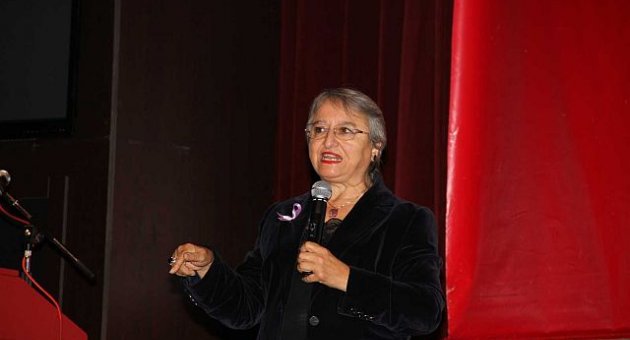 Türkiye’nin kadına şiddeti önlemek amacıyla yapılan İstanbul Sözleşmesine birçok devletten önce imza attığını fakat sözleşme hükümlerini uygulamadığını belirterek konuşmasına başlayan Av. Canan Arın şunları söyledi: Türkiye kadına yönelik şiddet mücadelesine 1980’lerin sonunda Mor Çatı Kadın Sığınma Vakfı’nı kurarak başladı. Bu zamana kadar kadında kocamdır ne yapsa yeridir anlayışı vardı. Şiddet dediğimiz zaman sadece fiziksel şiddet anlaşılmasın. Günümüzde kadına yönelik şiddetin çeşitliliği arttı ve birkaç tür bir arada kullanılıyor. Kadına yönelik şiddet dediğimiz zaman artık fiziksel şiddetin yanı sıra ekonomik, psikolojik, toplumsal, cinsel ve hatta digital şiddete de bakmalıyız. Herkes şunu bilmeli şiddet sadece fakir, ev hanımı, okumamış kadına uygulanmıyor zengin, üniversite mezunu, işi gücü yerinde kadınlar da şiddet görüyor. Cumhurbaşkanımızın gündemi değiştirmek için ”Kadın-erkek eşit değildir, bu işin fıtratında yok” diyor , başta kadınlar toplumun bütün kesimleri tartışmaya giriyor. O arada neler yapılıyor onlara bakmak lazım. Kadına yönelik siyasi irade yoktur, olmamıştır. Şiddete uğramış kadınlar derhal karakola, cumhuriyet başsavcılıklarına, aile mahkemelerine, kaymakamlık ve valiliklere başvurmalılar.