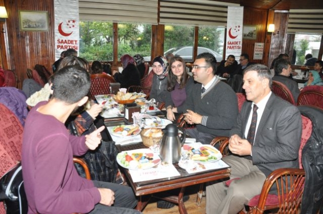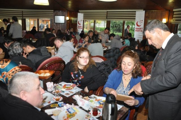 Anadolu Görme engelliler derneği istanbul il başkanlığının düzenlediği programa çok sayıda görme engelli vatandaşlar katılırken işitme engellilerde de programa katılırak yerlerini aldılar. Sabah kahvaltı programında yer alan konuklara açılış konuşması yapan Anadolu görme engelliler İstanbul il başkanı Hasan Çatalbaş "Engellileri birleştirmek için kurulmuş bir derneğiz.Engelenenler ötelenen değil,baş tacı olması gerekiyor.Biz bunu anlatamıyoruz. Biz dilenci pozisyonunda değiliz. Dertlerimiz çok."dedi. İl yönetim kurulu üyesi Enver Ertürk "Saadet partili olarak insana insan diye bakıyoruz. Bizler engelli olabiliriz. Ancak bana donanımları uygun yapmayan siyasetciler engellidir. suç onlarçözmelidir.ındır." diyerek ilgisizliği belirtti. Saadet partisi il başkanı Birol Aydın "Dünyada 1.5 milyon sokaklara mahküm. Ortadoğuda savaş var, kan var, zulüm var. , Dünyada 500 bin obezite olmuş insanlar var. Ülkemizde herkes adalet barış ve kardeşlik istiyor ama temin edilemiyor. Herkesin bir derdi var ancak bu dertleri siyasetciler bertaraf etmek zorundalar. Tezgah bozuk olursa yöneten ne yapsın. ak patili olsa ne olur, chp, mhp'li olsa ne olur. Hepimizin farklı engelleri var. Engelliler otobüse binerken oda parasını versin. Ama onunda geliri olsun. Devletin görevi fakir fukaraya kömür dağıtmak değil fakirliği azaltmaktır. Belediye başkanı ve kaymakam yaptıkları yardımlarla övünüyor. Senin görevin yardıma muhtaç sayısını azaltmaktır. Engellilere iş imkanı sağlayacaksın. Bizim avrupa ile yarışmaya gücümüz yetmez. almanya bu gün olduğu yerde dursun biz 30 yıl sonra dahi ona yetişemeyiz. Temennilerle iyi niyetlerle olacak bir iş değil,Bu dertleri azaltacak tezgahı iş başına getirilmesi gerekiyor. Duyarken duymamazlık, görerken görmemezlik edemeyiz."dedi. Programa katılanlar daha sonra heyete merak ettikleri soruları sorarak cevap aradılar. Kimileri cihaz temenindeki sıkıntıları dile getirirken kimileride uygun yazılımların temininin kolaylaşmasını dilediler. Saadet partisi il başkan yardımcıları Abdulkadir Çelebi ve Şaban Aydın ile Zeytinburnu ilçe başkanı Kemal Yılmaz'da salonda hazır bulundular. İşitm engelliler federasyonu koordinatörü Ayşe Köksal katıldığı kahvaltı programı için " Babamda görme engelli. Sofraya çatal kaşık bırakılmaması ve .açık büfe olmaması çok güzel. Görme engellilerle işitme engellileri bir sofrada buluşması bizleri derinden etkiledi"dedi.