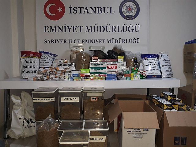 Sarıyer Emniyet Müdürlüğü'ne bağlı ekipler yaptıkları operasyonlarla, Sarıyer'i suçtan arındırmaya devam ediyor. Geçtiğimiz hafta, Sarıyer Çayırcuma'da zehir taçirlerine karşı yaptıkları başarılı operasyonun ardından "Duman 3" adını verdikleri operasyonla çok sayıda kaçak tütün ve tütün mamülü elegeçirildi. Operasyonda; 76.668 Kıyılmış tütün, 26660 adet+ 12 karton 200 lük makarona doldurulmuş sigara, 9800 gram+50 paket nargile tütünü, 39 paket kaçak sigara, 255 gram pipo tütünü, 31.605 gram+9 paket sigara tütün, 65 paket puro, 55 Karton 200 lük+16 paket boş makaron, 15 paket nargile aroması, 32 adet Elektronik sigara likiti, 2 paket nargile tatlandırıcısı, 231 paket sigara filtresi, 444 paket tütün sarma kâğıdı ve 38 paket Gizeh slim fitre ele geçirildi. Operasyonda yakalanan şüpheliler Polis Merkezi'ne getirilirken operasyonla ilgili soruşturma devam ediyor bilgisi verildi.