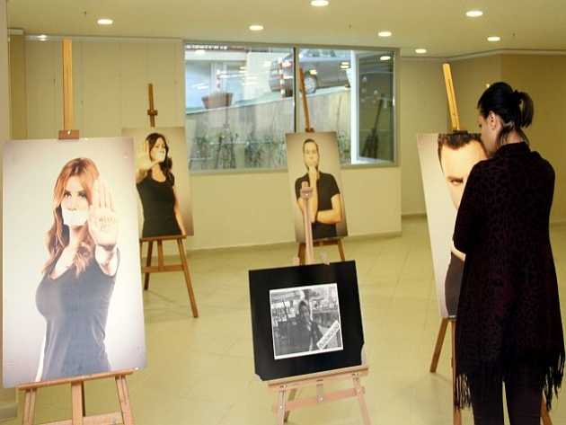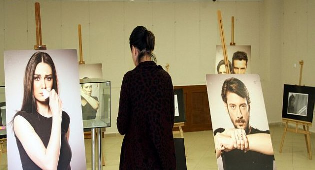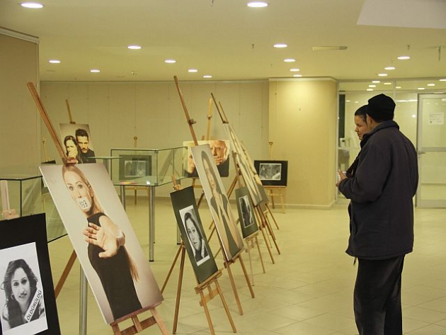 Ünlü isimlerin şiddet görmüş hallerinin fotoğraflanması ile hazırlanan eserlerin yer aldığı sergi, akıllı binaya gelen vatandaşlardan ilgi görüyor.