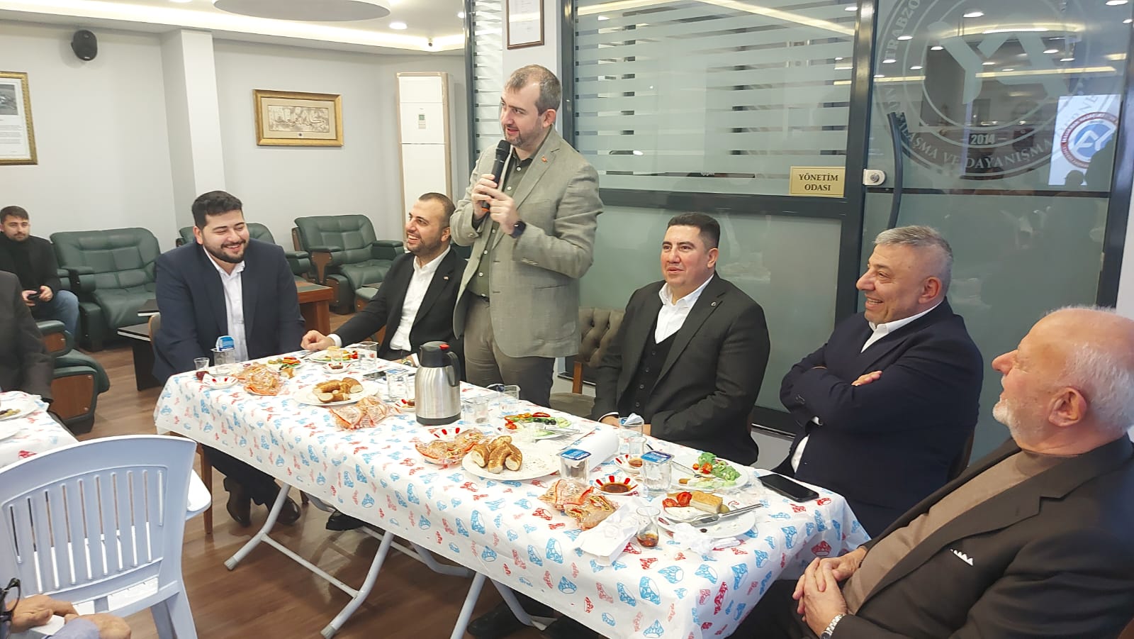 Trabzon Of Yemişalan köyü dernegi bereket sofrasını kurdu, Güngören'in değerlerini ağırladı. Dernek başkanı Halit Yılmaz ve yönetim kurulunun ev sahipliğini yaptığı Gönül ve Bereket sofrasında Güngören Belediye Başkanı Bünyamin Demir, Ak Parti İlçe Başkanı Devran Yalçınkaya, MHP ilçe başkanı Muhammed Alparslan Aldır, Güngören Belediye Başkan yardımcısı Rıza Uçan, Ali Furkan Sevinç, Belediye Başkanı Özel Kalem Müdürü Mehmet Seyyar, Trabzon dernekler Federasyon Başkanı İsmail Şatıroğlu ile Güngören'de Merkezi bulunan Trabzon Dernekleri ve AK Parti ile MHP ilçe yöneticileri özel günde yerlerini aldılar. Program açılış konuşmasında selamlama konuşması yapan dernek başkanı Halit Yılmaz katılımlarından dolayı herkese teşekkür etti. Selamlama konuşmasından Trabzon dernekler federasyon başkanı İsmail Şatıroğlu'da Şanlıurfa'da Eren Bülbül kütüphanesini açtıklarını Diyarbakır'da da gençlik merkezinin kuruluşu için çalışma başlattıklarını, Türkiye'nin her yerine Trabzon elinin değmesi için çalıştıklarını dile getirdi. Başkan Şatıroğlu Güngören Belediye Başkanı Bünyamin Demir'in de farklı bir Belediye Başkanı olduğunu dile getirirken ilçede yalnız başına protokol olmadan dolaşan hemşerileriyle göz göze, gönül gönüle olan bir Başkan olduğunu gurur duyduklarını dile getirdi. Ak Parti İlçe Başkanı Devran Yalçınkaya'da selamlama konuşmasında birlik beraberlik mesajı verirken Birlik beraberliğin daim olması için Güngören için çalışalım dedi. Selamlama konuşmasında Milliyetci Hareket Partisi Güngören İlçe Başkanı Muhammet Alpaslan Aldır'da davetlerinden dolayı Yemişalan köyü dernek başkanı ve yönetimine teşekkür etti.